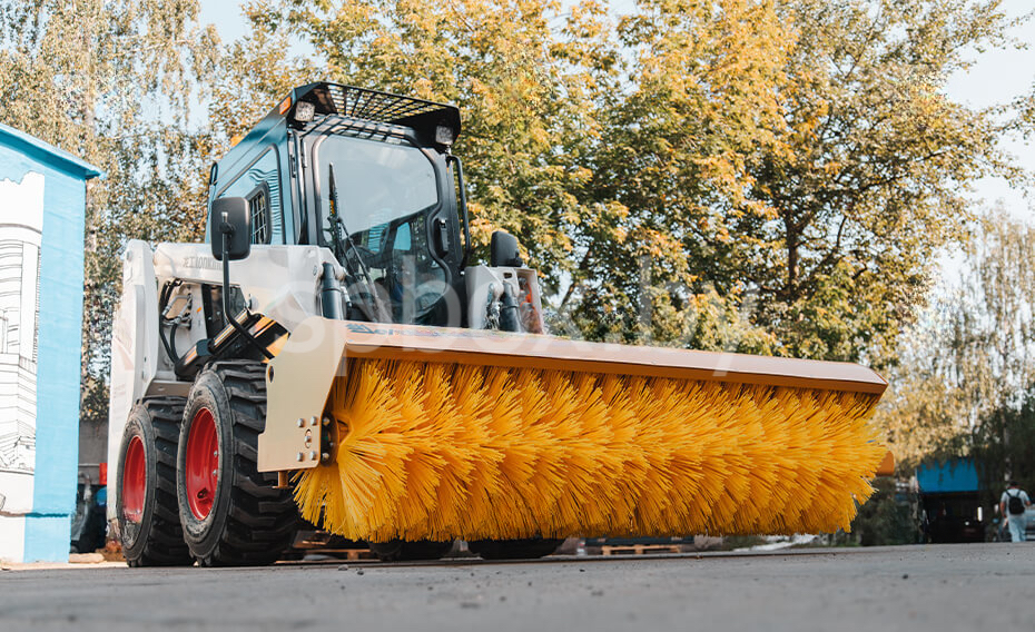 Щетка Delta RS1900G с гидроповоротом — топовая корейская модель шириной 1900 мм для мини-погрузчиков массой 2–6 тонн. Гидравлический поворот ±25° управляется прямо из кабины — максимальная скорость и удобство при уборке тротуаров, дворовых территорий, парковок, складов и городских улиц в Минске и по всей Республике Беларусь.