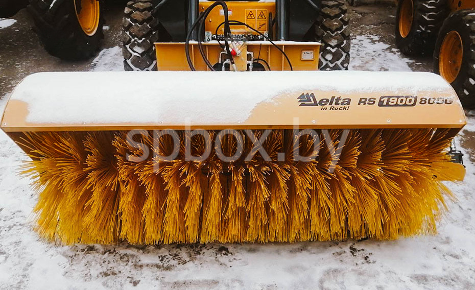 Щетка дорожная Delta RS 1900x800G с гидроповоротом — премиальная корейская модель шириной 1900 мм и высотой щётки 800 мм для мини-погрузчиков массой 2–6 тонн. Гидравлический поворот ±25° управляется прямо из кабины — максимальная производительность и комфорт при уборке тротуаров, дворов, парковок, складов и городских улиц по всей Беларуси.